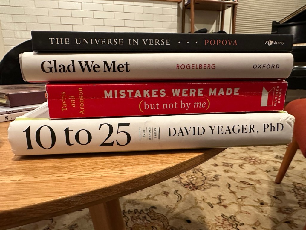 Similar to the one above, this book began to feel a bit repetitive at times. I think it’s a trap/feature of many books written by academics for broad audiences. They succeed in making the content accessible but, in covering extensive evidence, are replaying variations on a theme. (I get it, because I can fall into this trap too.) A major plus of this book is highlighting a few simple interventions that can have significant effects on shifting behaviors in this group, such as the feedback note that states you’re giving the feedback because you believe they’re capable of attaining high standards. And some of the lessons for the younger age group can, I think, also support older groups too.